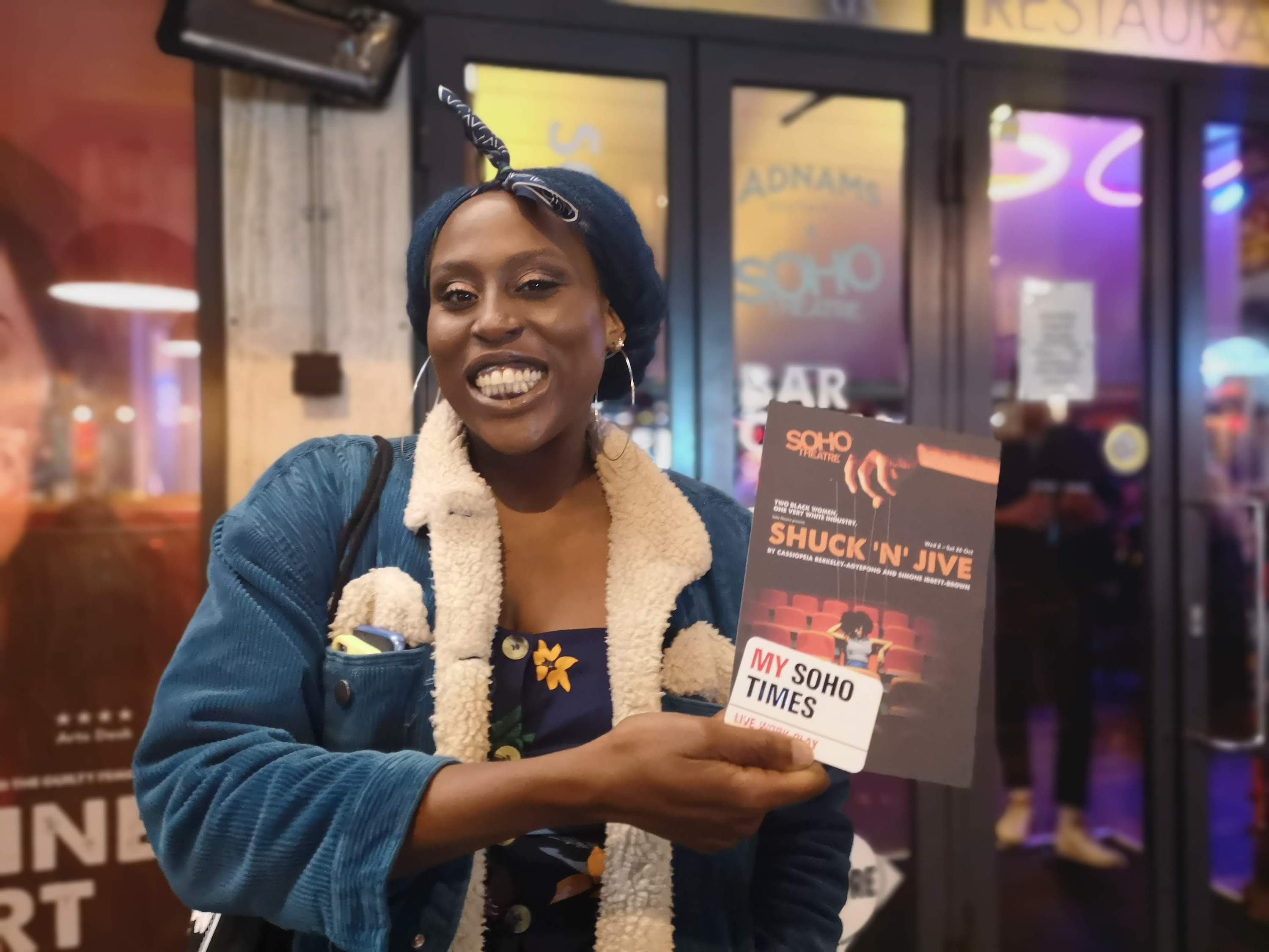 Next Image My Soho Times Shuck n Jive | Rosario Blue Writer Rosario Blue at Soho Theatre on press night