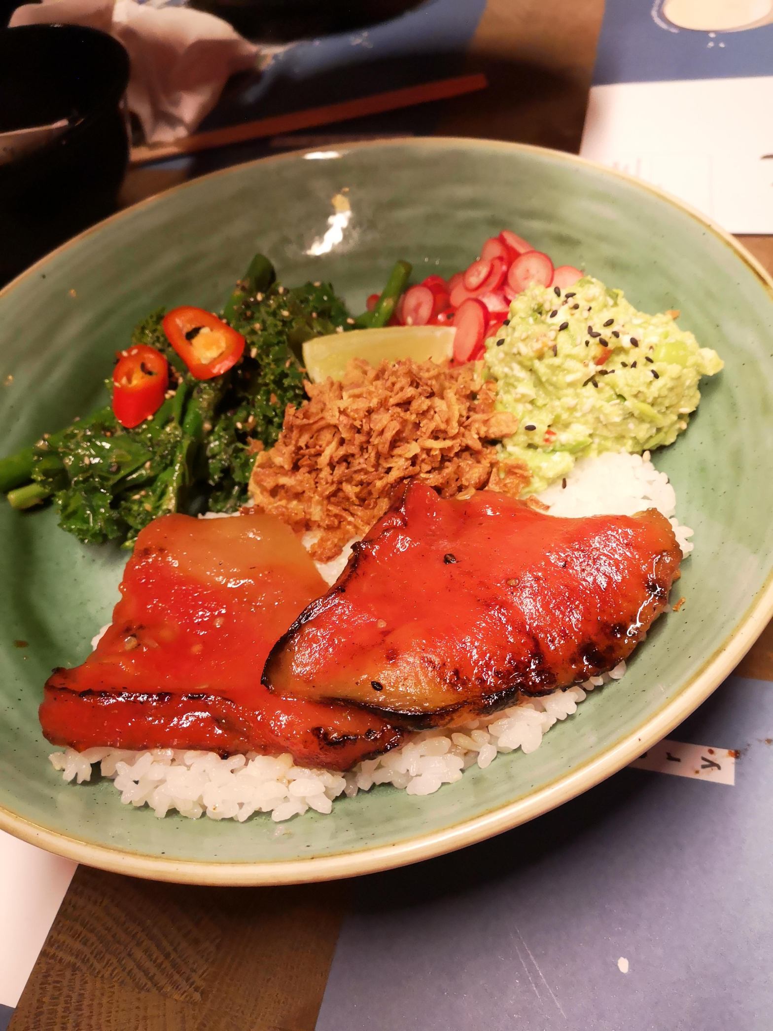 The guacamole wasn’t your average helping of avocado. Blended tofu explains the silkiness of the dip while edamame keeps the guacamole sweet. Add it to the bowl which is then topped with crispy fried shallots, sesame seeds, fresh chilli and lime.