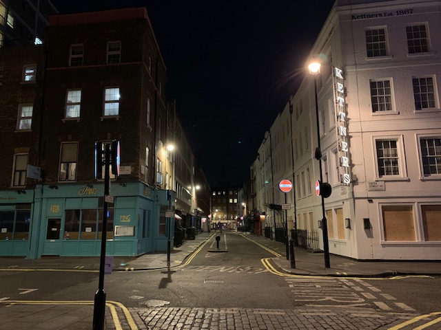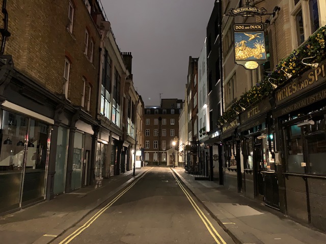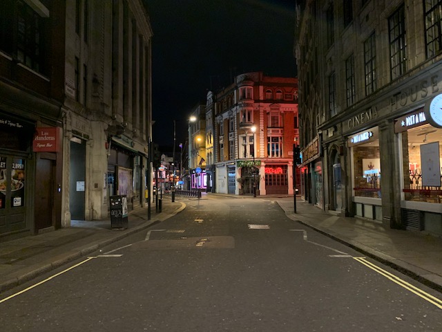 We are so used to seeing Soho alive and vibrant with people hanging out, looking for a place to eat. Perhaps meeting friends in a coffee shop, or later in the evenings queueing up for a performance of Mary Poppins or having a drink or two in a local bar. However that’s all come to stop.