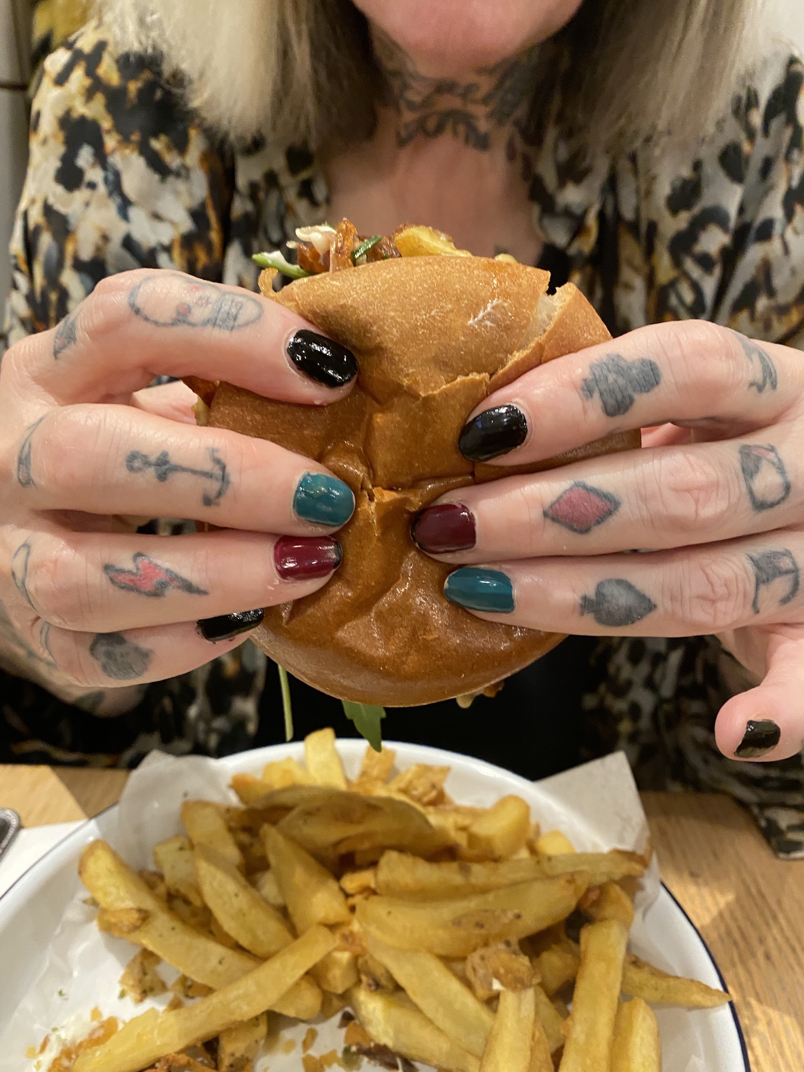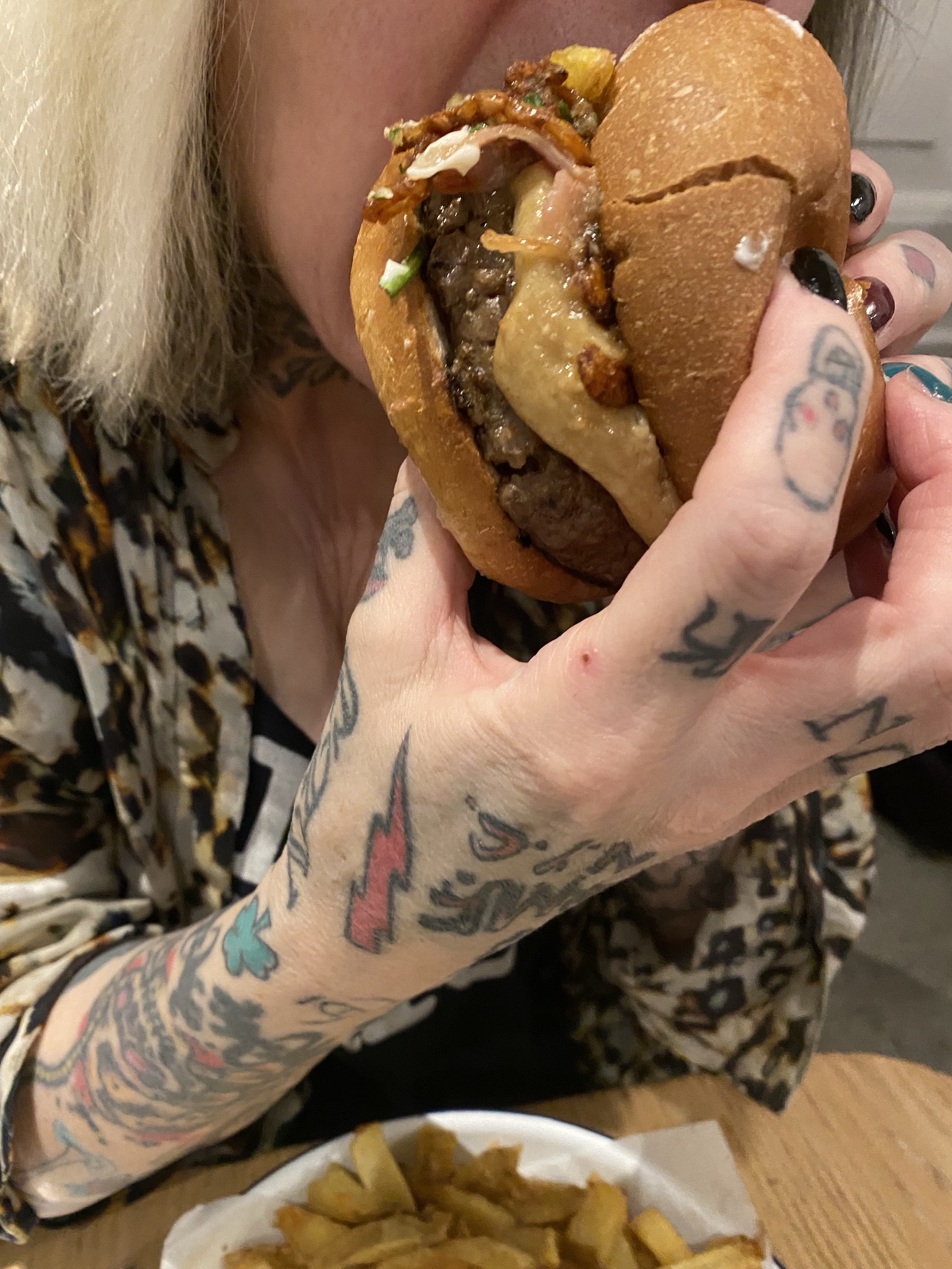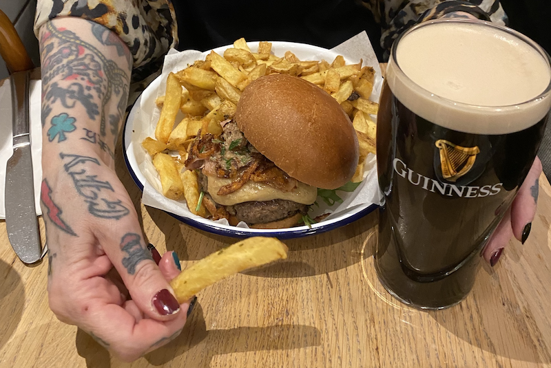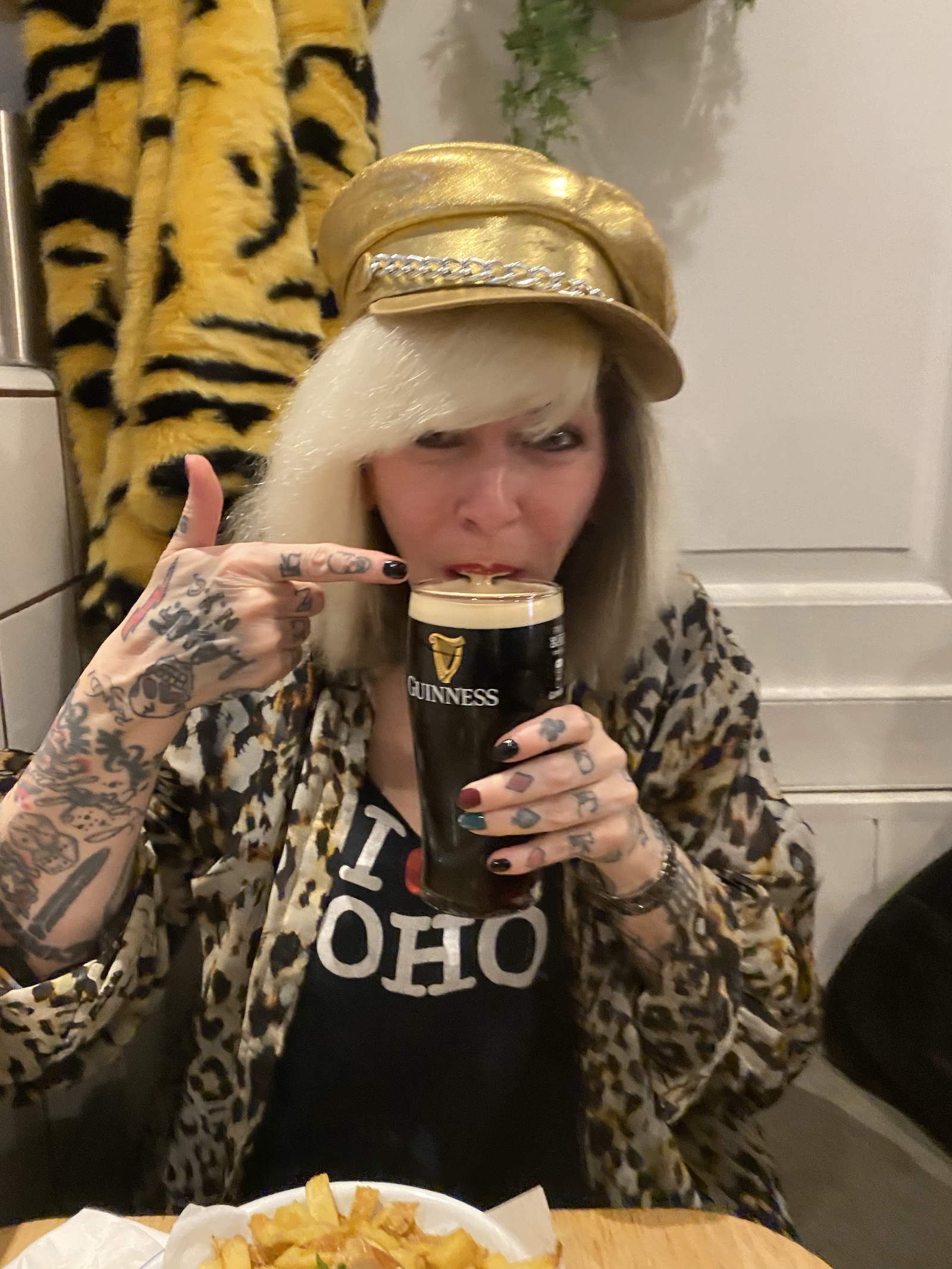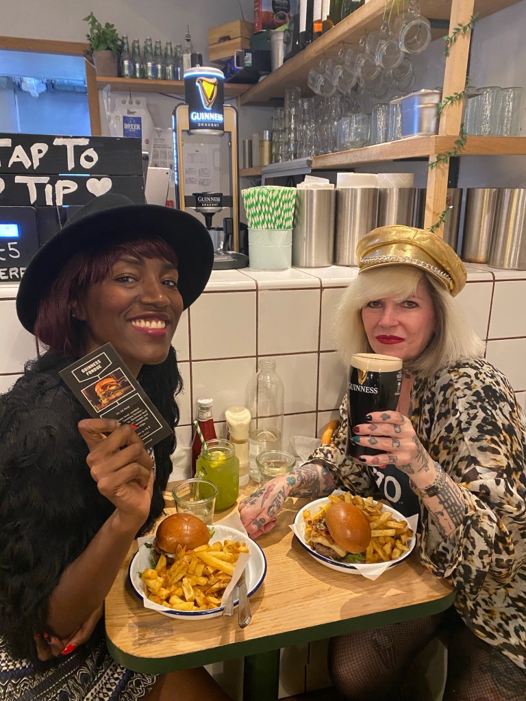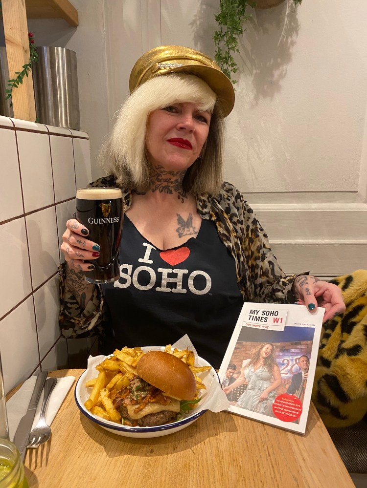 This March, Honest Burgers have teamed up with Guinness to launch the GUINNESS FONDUE burger, on offer at all Honest restaurants and for delivery from the 1st to 28th March… Our editor in chief Kai aka The Soho Girl knew just the person to invite for a taste test – Soho’s very own lucky charm, Bev Elliott aka The Punk Queen of Soho!
