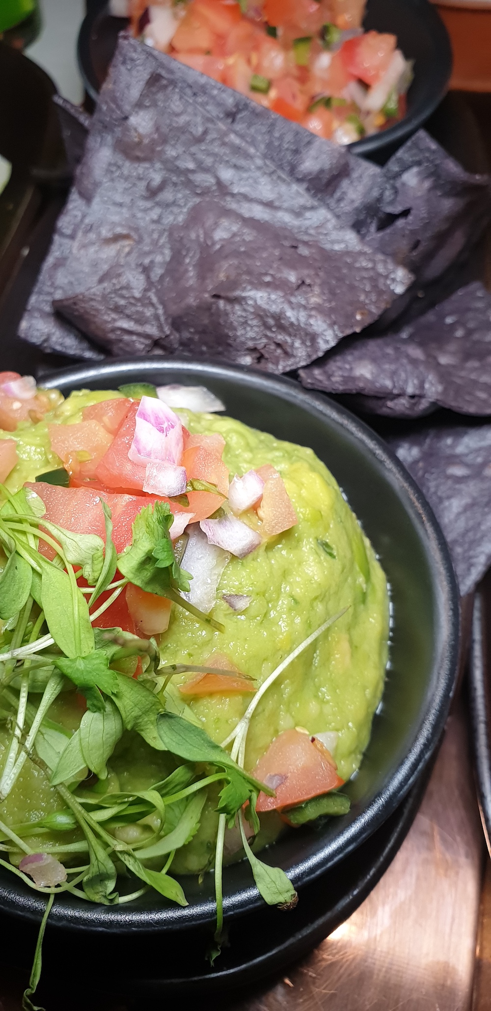 Crispy squid, chipotle mayonnaise £12.00 | Guacamole, tortilla chips, pico de gallo (VG) £8.00 | Sweet potato and black bean Quesadilla, pico de gallo, avocado, queso fresco (V) £11.00 | Chicken Taquitos, pico de gallo, avocado salsa, queso fresco £12.00 | Korean fried chicken, pickled cucumber, Bean sprouts, sesame seeds £14.00 | Chips, chipotle mayonnaise (V) £6.00