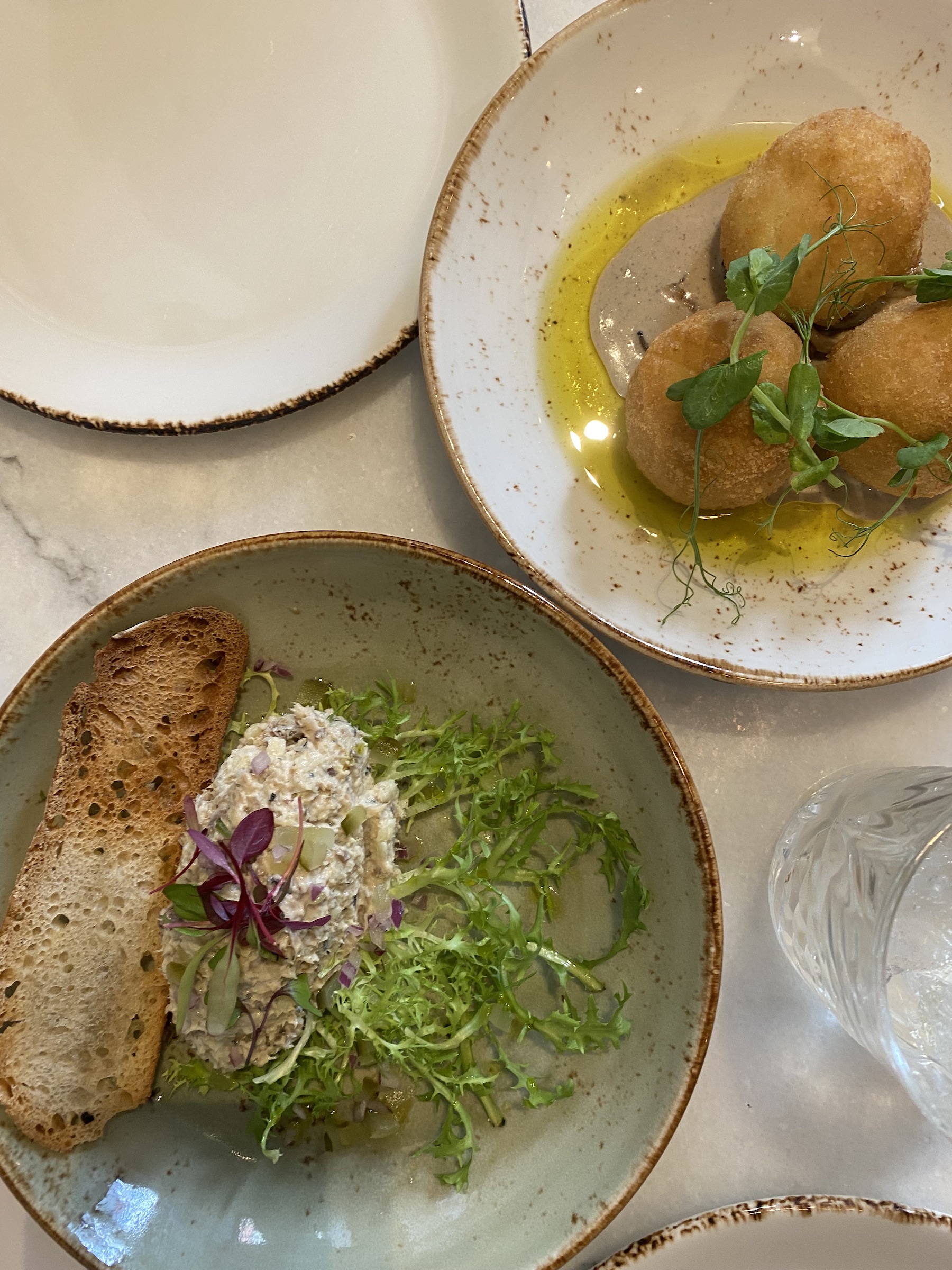 The Seasonal Specials boast of seafood and vegetarian dishes which may come as a surprise. The Baltic herring fillet (£9) with beetroot, red onions and apples, served on top of rye bread is a delight, as is the debut Potato doughnuts stuffed with mushrooms (£10) served with creamy mushroom sauce and truffle oil – a great example of ZIMA being inventive to create real comfort food gems you wouldn’t expect! The Aubergine caviar (£12) is fast becoming a regular staple on the menu, served with dill oil and pomegranate. I didn’t have space for it, but if going without dessert is a crime for you then the Sharlotka — applecake (£10) served with lemon cream and raspberries is a must!