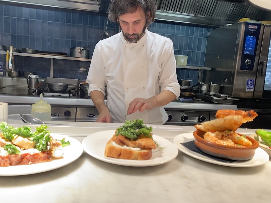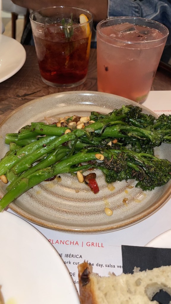 The restaurant gets its name, Brindisa, from the word ‘Brindis’ – to raise one’s glass in a toast; In true Brindisa fashion, we began the evening toasting over Cava Sangría and Negroni De Mare. Both cocktails were delicious! Our server recommended three tapas dishes per person to share. Tapas is traditionally a small portion of food served to accompany a drink.