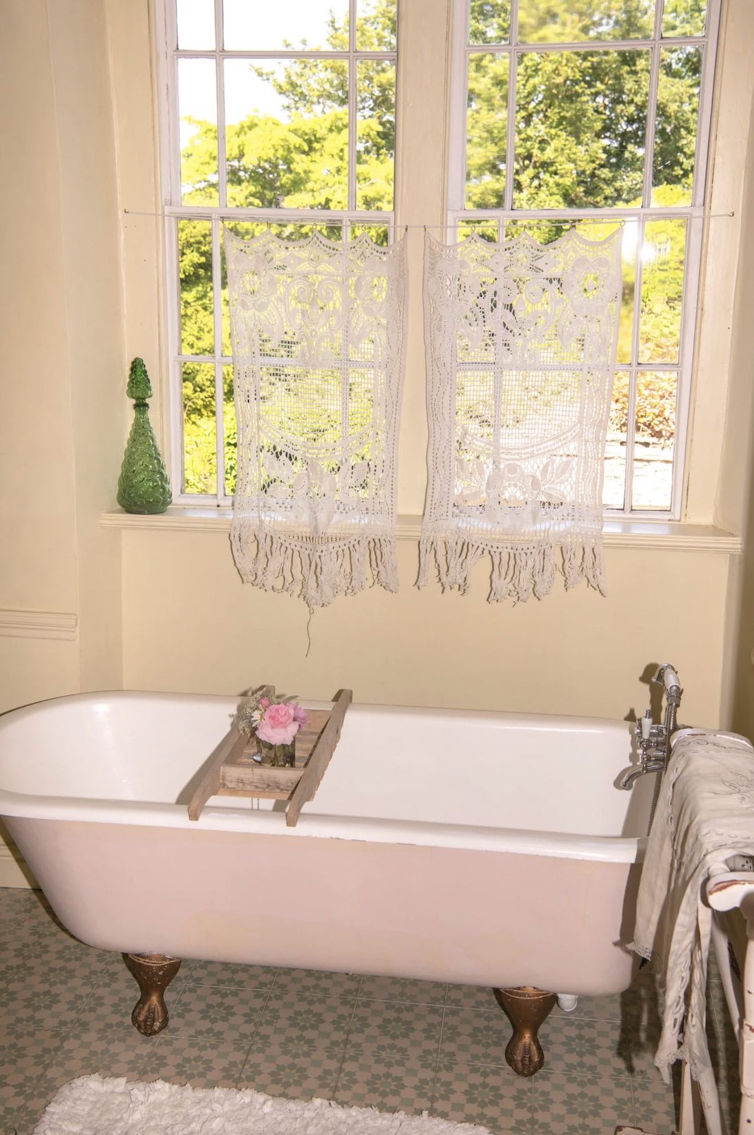 I love vintage lace or vintage crochet throws. I put them on windows and tables, and I use them as bedspreads. I love them in kids’ rooms too. They make small rooms have that vintage ‘cottagey’ look.