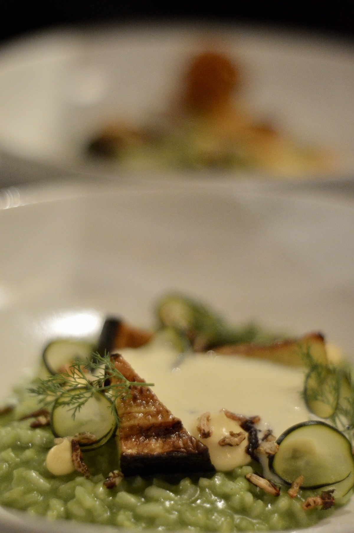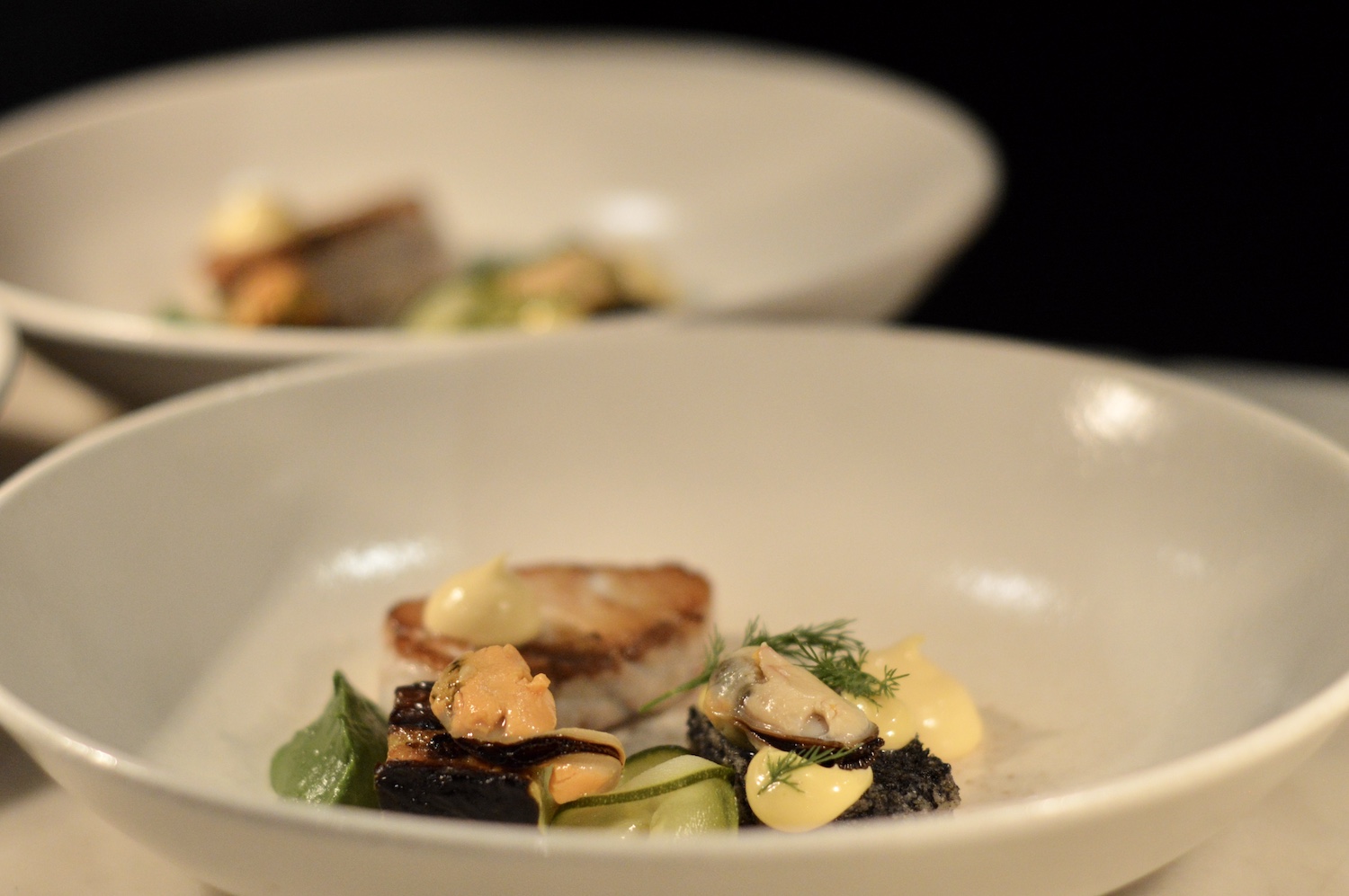 Course 4 – Arròs Negre: Embark on a journey of culinary contrasts with a visually stunning dish. Black Pollock takes centre stage, accompanied by the flavours of Pickled Mussel and Black Rice Cake. The dish is elevated by a velvety Saffron Emulsion, harmoniously paired with the freshness of Courgette & Shellfish Cappuccino.