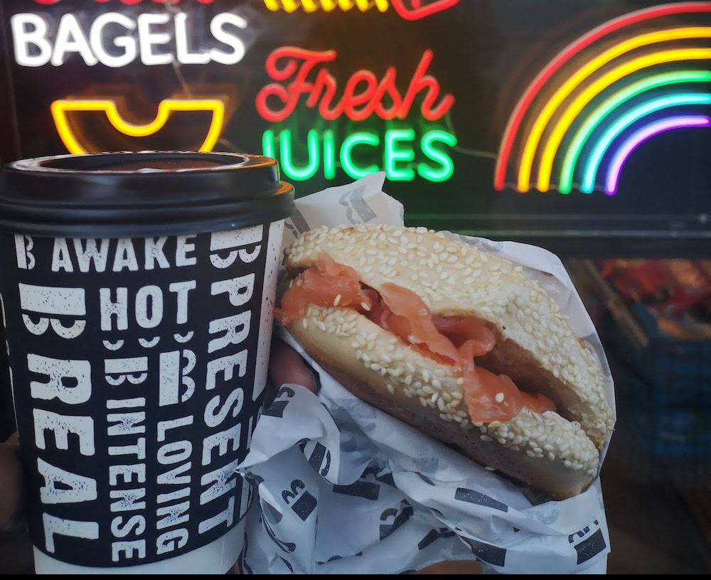 If you’re in the mood for a delicious New York-style bagel and a great cup of coffee, B Bagel Bakery on the corner of Old Compton Street and Wardour Street is the place to go. They serve up freshly baked bagels with a selection of fillings, along with a variety of coffee options to complement your meal. It’s a cozy spot for a quick bite in between exploring Soho’s vibrant streets. (54 Wardour Street, London W1D 4JF).