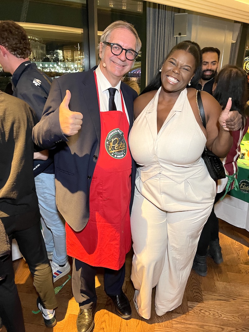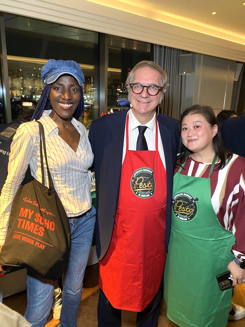 Roberto Panizza, the esteemed King of Pesto, shared the authentic way to make pesto, “Pesto is a symbol of Genoa. Making pesto is my life, and it’s been my passion for over 20 years. You need seven ingredients to make the perfect authentic Genoese pesto which are; Genoese basil (which is sweet), Italian pine nuts, garlic from Vessalico (Imperia), Parmigiano Reggiano cheese, Pecorino Fiore Sardo cheese, sea salt from the Trapani salt pans and extra virgin olive oil from Riviera Ligure, all mixed together with a traditional mortar and wooden pestle. We are proud of our tradition and we want to maintain the memory of traditional Genoese pesto.“