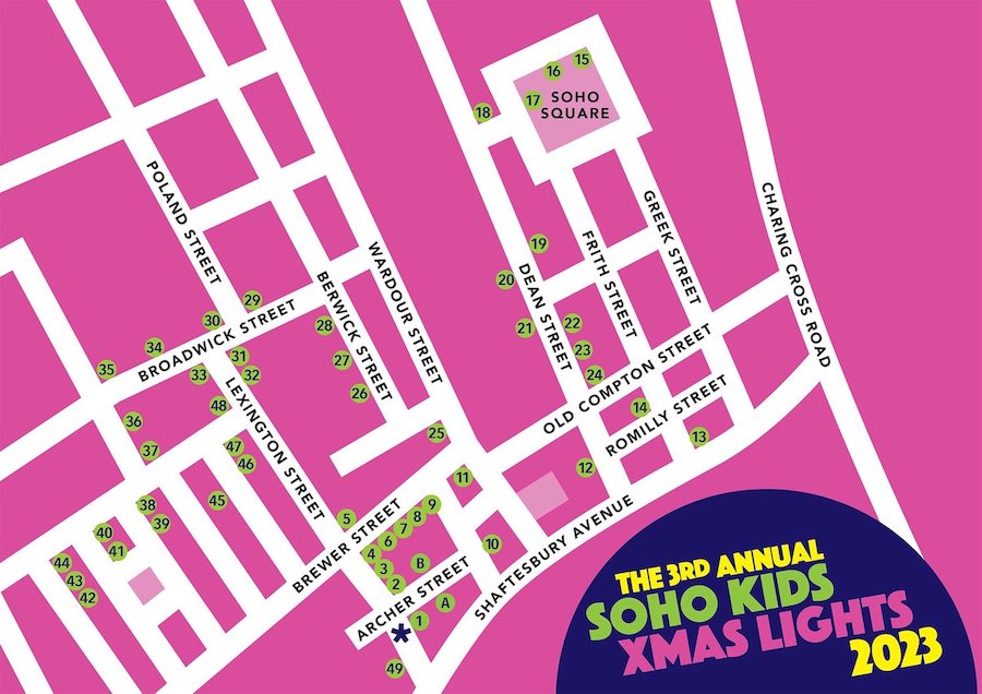 The lights are up now until January. Visitors can download a walking tour of the lights via www.citylions.org/soho-kids-xmas-lights-2023/ showcasing a total of 49 lighting creations.