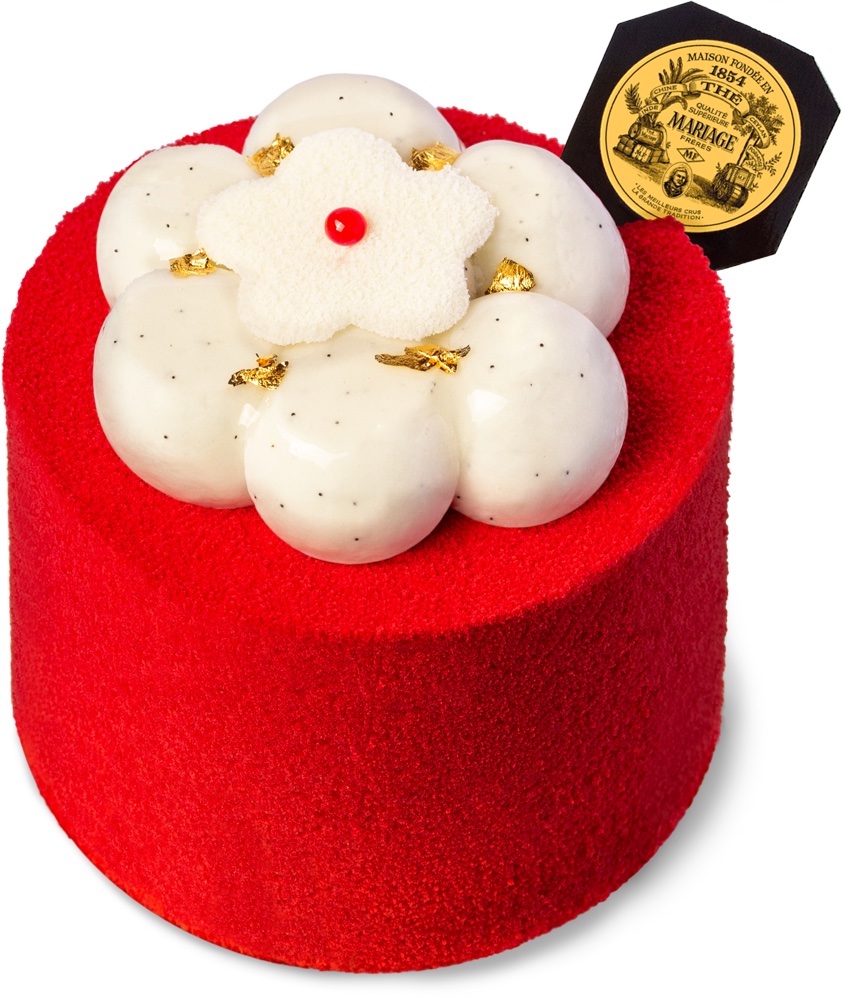 A rich, fruity plum centre perfumes a Genoa-style biscuit with almonds and Bourbon vanilla. The Chantilly cream infused with Ume Cha tea, with notes of plum blossom, adds depth to the intensely red dessert.