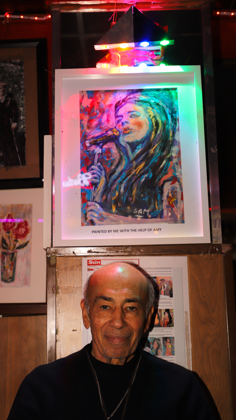Seated beneath a softly illuminated frame – a self-portrait of the singer – in his usual spot, he recollects the collaborative effort they put into painting it together. “She added golden glitters in the end, yup, that’s Amy.” These are just a few memories Sam still relives today when walking through the confines of Jazz After Dark the space that ties together the bond shared between the two artists.