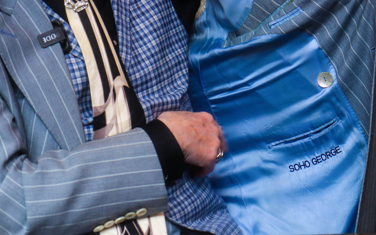 When I ask him where he gets his style inspiration from, he smiles and taps his head, “I don’t get it from anywhere, it’s in here”. It is at this point that he opens his jacket and reveals his nickname, Soho George, proudly embroidered on the inner lining. “I know who I am” he says, and not just because it’s embroidered on his clothing to remind him… it’s deeper than that, an intrinsic self-awareness that is so refreshing. “You’ve got to be you”, he says, “we’re all in a box and you’ve got to figure out where you fit within that”. It’s safe to say George has this figured out: Soho is where he has always and will always fit.