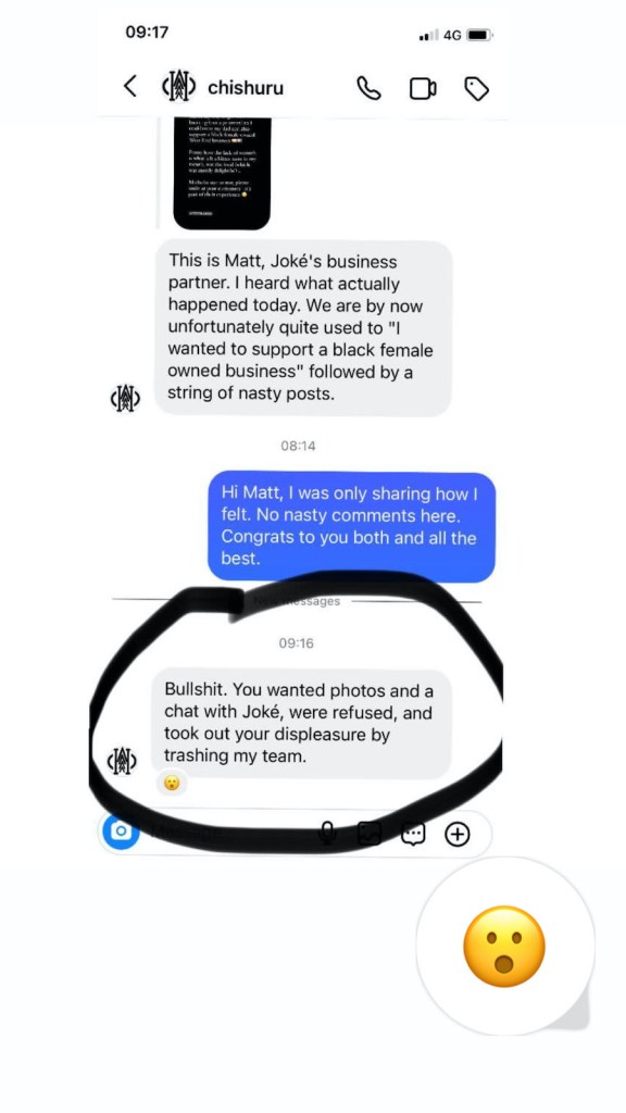 Chishuru has so many amazing accolades, however, this also comes with greater responsibility; customer service, PR, and professionalism. Unfortunately, their handling of this recent situation lacked the expected level of professionalism. Despite having the opportunity to address the issue with a basic “we’re sorry you felt this way” apology, or to disregard it entirely – I’m a small fish in the sea after all with only 4K followers and only a fraction see my IG Stories (my life as “the Soho girl” is surprisingly not as eventful as you might expect despite living in the heart of London, I’m a home buddy on days I don’t need to be out). Instead, Chishuru chose to share my diplomatic correspondences with them from that morning with their 30K+ followers, subjecting me to the brunt of their trolls.
