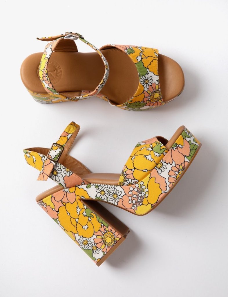 Designed in a stylish 70’s inspired pattern, with a sustainable cotton upper and buckle fastening. The Gemma features an on-trend block heel, and cushioned sock for comfort, perfect for dancing those summer nights away…