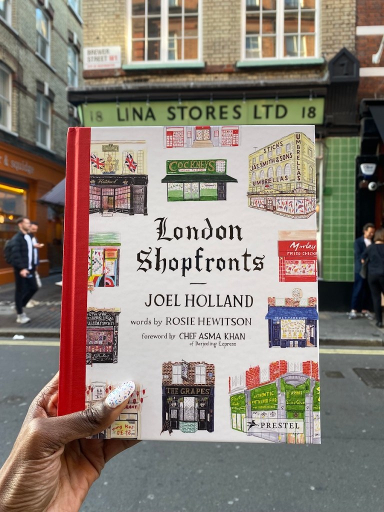 London Shopfronts is an illustrated book celebrating the beauty and uniqueness of London’s shops and businesses. Filled with vibrant illustrations capturing the spirit of the city’s most iconic shopfronts. The book, created by illustrator Joel Holland with descriptions by Time Out journalist Rosie Hewitson, and a forward by Chef Asthma Khan of Darjeeling Express, is a colourful tribute to the city and its hidden stories. Each page showcases gems like the smart blue shopfront of Neal’s Yard Dairy in Covent Garden, BAO in Soho, and the sweetshop-like displays of the London Review Bookshop. It makes a great guidebook around London… even for those Londoners well-versed in their city!