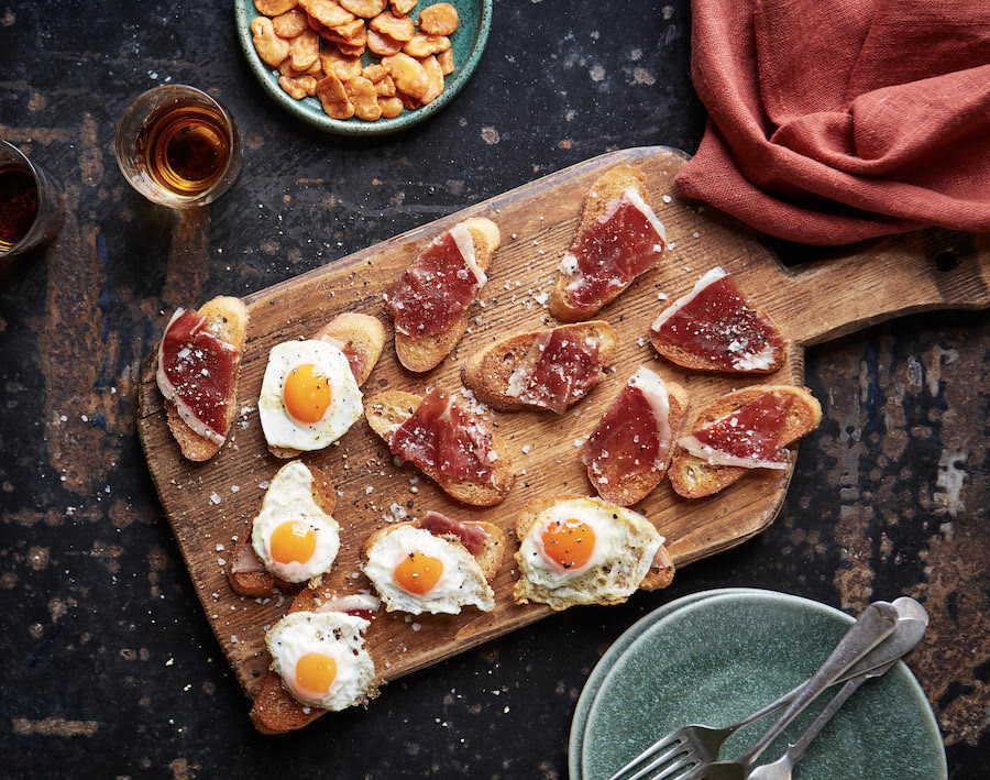For dish two, arrange a generous layer of delicate serrano ham on toasted bread before adding some gently fried quail eggs on top. The only debate will be how much you cook the eggs but it’s a preference!