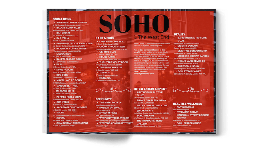 Pick up a copy of our independent print publication – your guide to discover the best of Soho – on your next visit into town!