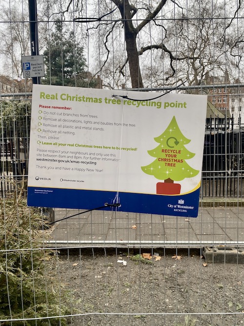 So, what do you do with your tree once Christmas is over? Fear not, Sohoites: Westminster City Council has made disposing of your Christmas tree simple. You can drop your tree off at designated recycling points, including the convenient Soho Square East entrance, where it can be composted, chipped, or otherwise transformed into something less sad than a pile of needles on your floor.