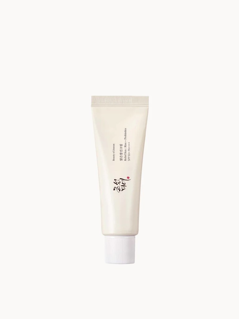 I tend to reach for lightweight Korean options, such as The Relief Sun: Rice+Probiotics SPF50+ from Beauty of Joseon. It has an almost moisturiser-like texture, feels breathable on the skin, and layers seamlessly under makeup without leaving a cast or heaviness.