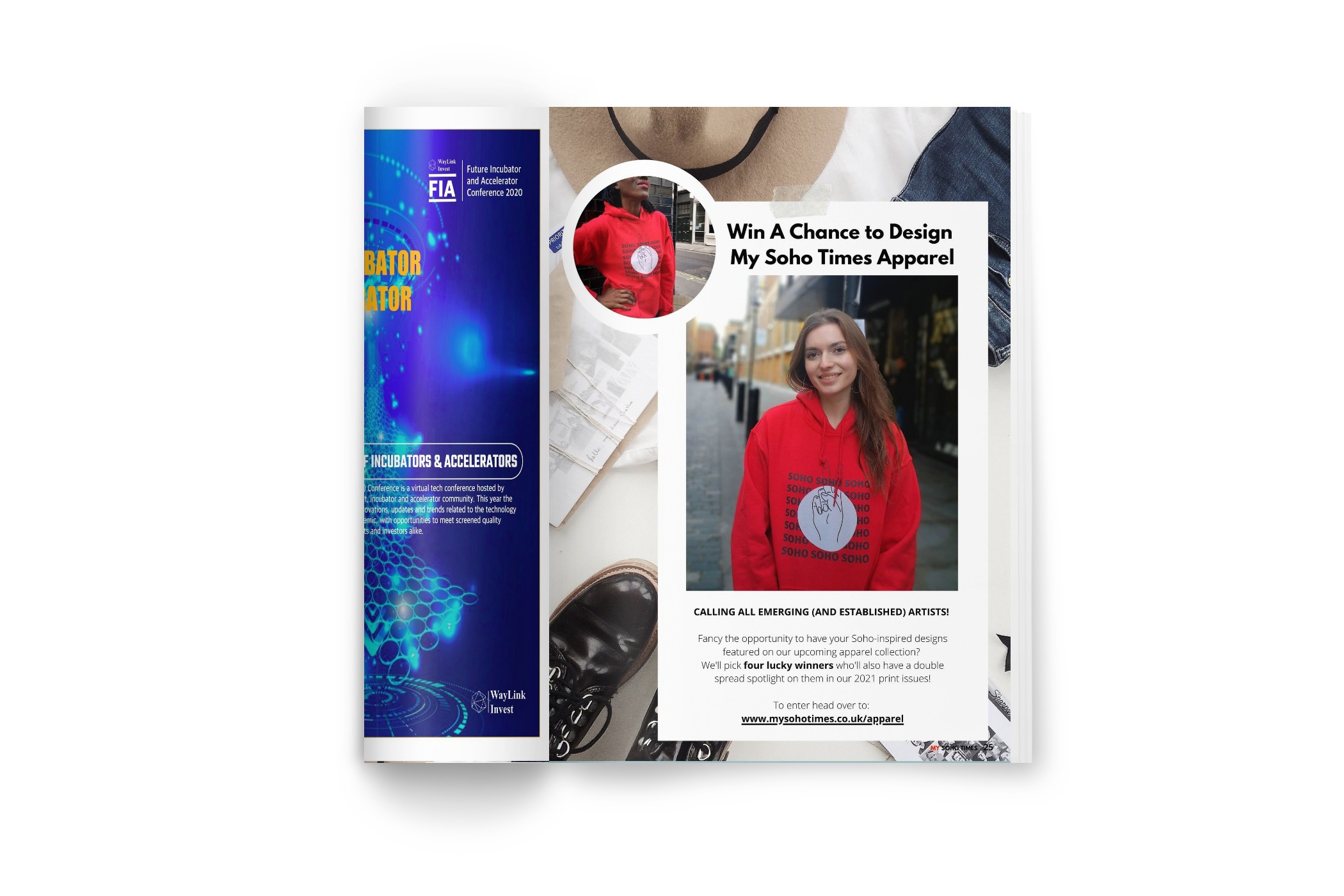 Fancy seeing your Soho-inspired design on our apparel collection? PLUS have a double spread page spotlight on you in our 2021 print editions? We’ll pick 4 lucky winners – so find the inspiration and get designing!